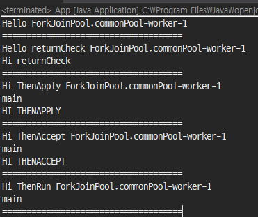 System.out.println("Hi ThenApply " + Thread.currentThread().getName());
