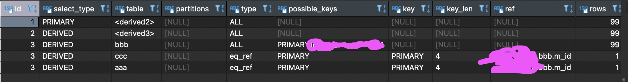 아래의 쿼리 앞에 사용쿼리 앞에 explain을 붙이면 발생되는 화면이다. (DB 클라이언트는 DBeaver를 사용)