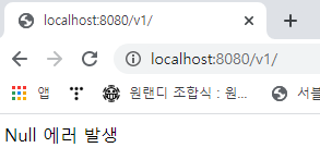 @RestController @RequiredArgsConstructor public class ExceptionHandlerController { private final ExceptionHandlerService service; @GetMapping("/v1") public ResponseEntity playNullPointException() { return new ResponseEntity<>(service.nullPointExceptionError(), HttpStatus.OK); } @GetMapping("/v1/sample") public ResponseEntity playSampleException() { return new ResponseEntity<>(service.sampleException(), HttpStatus.OK); } @ExceptionHandler({NullPointException.class}) public String nullPointExceptionHandler() { return "Null 에러 발생"; } }ExceptionHandlerController2